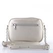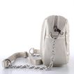 Metalická dámská crossbody kabelka menší velikosti s řetízkovým ramenním popruhem.