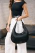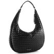 Dámská módní kabelka - gondola s proplétaným vzorem v oblíbené černé barvě.