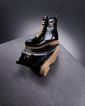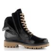 Kožený dámský kotník v černém lakovaném provedení a nadčasovém stylu, vybavený teplou podšívkou.