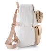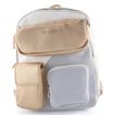 Na přední straně batohu najdete odepínatelnou ledvinku a praktické kapsičky pro rychlý přístup k drobnostem. Zadní strana je vybavena zipovou kapsou a poutkem na kufr, zatímco boční kapsičky jsou ideální pro lahve nebo drobnosti. Vnitřní výbava zahrnuje kapsičku na cennosti a dvě otevřené kapsy na mobil a klíče.