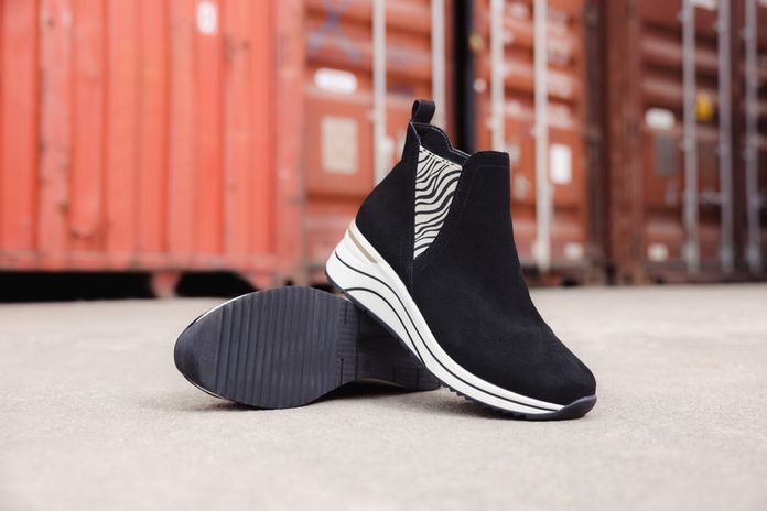 Nápaditý kotník ve sportovnějším stylu od značky Remonte je skvělou volbou pro nadcházející podzimní a zimní sezónu. Boty jsou vyrobeny ze semišové kůže a jejich černá barva je doplněna černo-bílým pruhovaným vzorem na vsadce a podešvi. Široká pružná vsadka na vnější straně a zip na vnitřní straně zajišťují snadné nazouvání. Uvnitř najdete teplejší podšívku s krátkým vlasem a vyjímatelnou stélku s podporou podélné nožní klenby a patním absorbérem. Vyšší syntetická podešev s klínkem poskytuje stabilitu a pohodlí při každém kroku. Výška kotníku je 9 cm (měřeno po hranu pruženky, bez podešve). Tento model je ideální pro ženy, které hledají komfortní a stylovou obuv pro každodenní nošení.