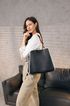 Dámská prostorná shopper kabelka s obšívanými okraji a vnitřní etují.