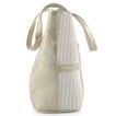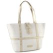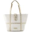 Dámská metalická shopper kabelka s vytkávaným vzorem na přední straně.