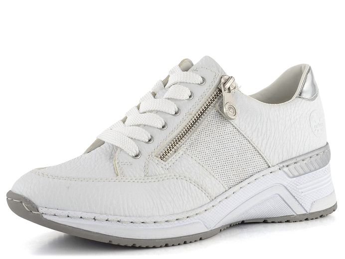 Tyto dámské polobotky od značky Rieker spojují trendový design s pohodlím, které oceníte při každodenním nošení. Elegantní bílá barva je lehce odražená a doplněná stříbrnými metalickými detaily, které dodávají botám moderní vzhled. Funkční postranní zip usnadňuje obutí, zatímco měkká a vyjímatelná kožená stélka zajišťuje maximální komfort. Díky strukturované syntetice jsou boty odolné a snadno udržovatelné. Klínová podešev dodává polobotkám nejen styl, ale i stabilitu. Ideální volba pro jarní a letní sezónu, která kombinuje sportovní střih s elegancí. Doporučujeme používat impregnační přípravky pro zvýšení odolnosti vůči vlhkosti.