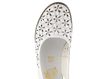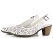 Dámské lodičky od značky Rieker jsou ideální volbou pro jarní a letní sezónu. Tyto elegantní boty vynikají kulatou špičkou a ozdobným prořezáváním, které vytváří jemný květinový vzor. Svršek je vyroben z kvalitní hladké kůže v odražené bílé barvě, což dodává botám sofistikovaný vzhled. Patní pásek s délkovou regulací a všitou pruženkou zajišťuje pohodlné nošení po celý den.