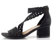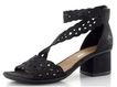 Dámské sandály značky Rieker v elegantní černé barvě jsou ideální volbou pro jarní a letní dny. Jejich kulatá špička a široké pásky s prořezávaným vzorem zajišťují nejen stylový vzhled, ale také pohodlí při nošení. Svršek je vyroben z textilie posázené drobnými broušenými kamínky, které dodávají sandálům nádech elegance. Kotníkový pásek se snadno upíná na suchý zip, což usnadňuje obouvání. Příjemně měkká stélka a syntetická podešev s 5 cm vysokým podpatkem zajišťují komfort i při celodenním nošení. Tyto sandály jsou skvělou volbou pro každou příležitost, ať už se chystáte do města nebo na formální akci.