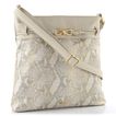 Kabelka od značky Rieker v jemném metalickém provedení je ideálním doplňkem pro jarní a letní sezónu. Její praktická střední velikost a elegantní design s hadinkovým vzorem v béžové barvě se šedými a platinově zlatými akcenty ji činí univerzální volbou pro každou příležitost. Přední strana zdobená kovovou sponou ve zlaté barvě dodává kabelce šmrnc.