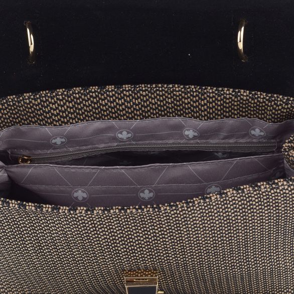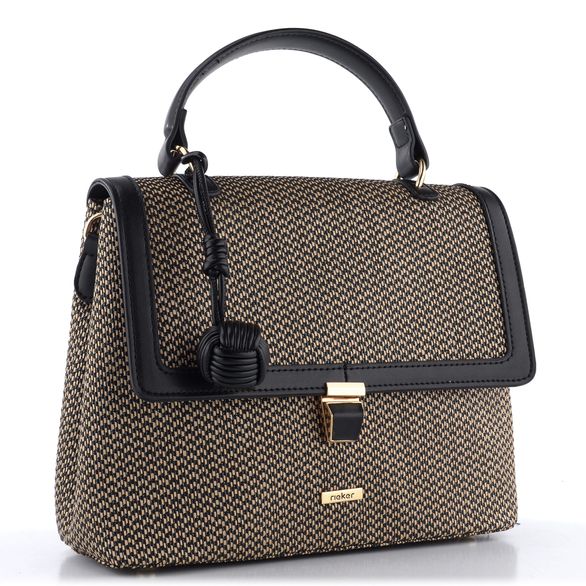 Dámská kabelka od značky Rieker v elegantní černo-béžové kombinaci je ideální volbou pro ty, kdo ocení autentický design a trvalou kvalitu. Je vyrobena z umělého lýka, prošívaného černou lurexovou nití, a doplněna hladkou syntetikou a zlatým kováním. Kabelka nabízí praktické uspořádání - vnitřní přepážka rozděluje hlavní kapsu na dvě části, z nichž jedna obsahuje zipovou kapsičku na cennosti, zatímco druhá nabízí dvě otevřené kapsičky na drobnosti. Odepínatelný ramenní popruh s nastavitelnou délkou zajišťuje pohodlné nošení. S rozměry 23 cm na šířku, 20 cm na výšku a hloubkou dna 8,5 cm je tato kabelka ideálním doplňkem pro každodenní nošení i formální příležitosti.