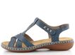 Dámské kožené sandály v šedomodré barvě, s nártovým T-páskem a zapínáním na suchý zip.
