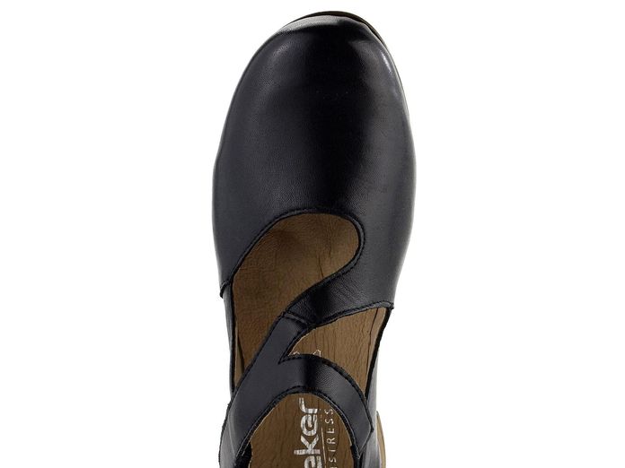 Dámské lodičky s volnou patou od značky Rieker jsou ideální volbou pro ty, kteří hledají komfort a styl v jednom. Tyto lodičky v elegantní černé barvě mají kulatou špičku a jsou vyrobeny z kombinace hladké kůže a syntetiky. Nártový pásek se všitou pruženkou a zapínáním na suchý zip zajišťuje snadné obouvání a pevné držení na noze.