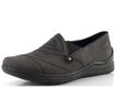 Dámské prozouvací polobotky v širším střihu a tmavě šedé barvě s lehkou šitou konstrukcí.