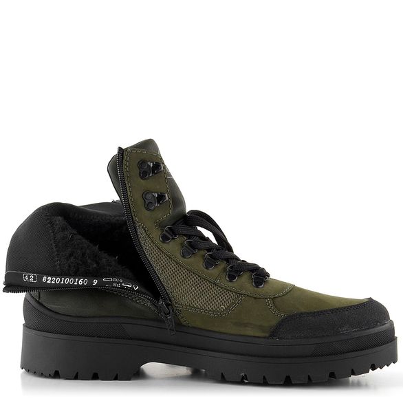 Olivově zelená barva s černými doplňky a pogumovanou špičkou přidává botám na atraktivitě. Šněrování s kovovými očky a horními háčky umožňuje snadné a pevné utažení. Pro ještě snadnější obutí je zde zip na vnitřní straně. Silně polstrovaný kotníkový lem a jazyk zajišťují extra komfort.
