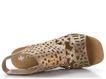 Dámské sandály na podpatku s prořezávaným vzorem a duhově barevným metalickým potiskem.