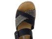 Komfortní sandály na klínku od značky Rieker jsou ideální volbou pro jarní a letní dny. Tyto páskové boty v elegantní černé barvě s černobílým vzorem nabízejí prostornou kulatou špičku, která je označena jako "extra width", což je perfektní pro normální i širší chodidlo. Svršek je vyroben z kombinace lehce mačkané syntetiky a splétané textilie, což zajišťuje jak styl, tak pohodlí.