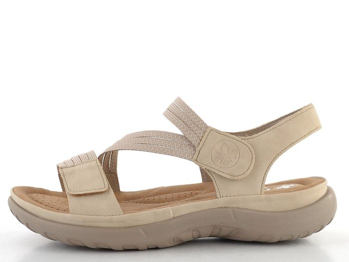 Zažijte maximální pohodlí s dámskými sandály od značky Rieker, které jsou ideální volbou pro jarní a letní sezónu. Tyto sandály v světlé béžové barvě kombinují lehkost a styl, což je činí perfektními pro každodenní nošení ve městě nebo na lehkou procházku. Svršek z matné syntetiky a žíhané pružné pásečky se dokonale přizpůsobí tvaru vašeho chodidla, zatímco pásky na suchý zip zajistí snadné a rychlé upnutí. Měkká a tvarovaná stélka poskytuje komfort na každém kroku. S podpatkem vysokým 3,5 cm a velmi lehkou podešví jsou tyto sandály téměř neznatelné na noze.