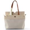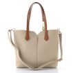 Jednoduchá a elegantní dámská shopper kabelka v béžové barvě s ozdobnou saténovou stuhou.