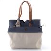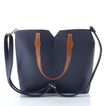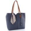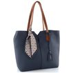 Jednoduchá a elegantní dámská shopper kabelka v tmavě modré barvě s ozdobnou saténovou stuhou.