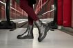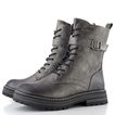 Dámský metalický kotník se šněrováním a zipem, vybavený teplou podšívkou.
