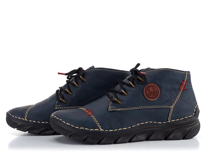 Dámský vyteplený kotník od značky Rieker je ideální volbou pro chladné podzimní a zimní dny. Boty mají prostorný, kulatý střih, který je vhodný pro standardní i mírně širší chodidlo. Svršek je vyroben ze syntetického materiálu s jemnou strukturou v temně modré barvě s mírným nádechem do švestkové. Kontrastní béžové a červené šití dodává botám stylový vzhled, zatímco kovové průvlaky na šněrovadla a logo na vnější straně podtrhují jejich jedinečnost.