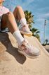 Stylové tenisky Rieker Sport W2506-61 jsou ideální volbou pro ženy, které hledají kombinaci komfortu a módního designu. Svršek z matné a broušené syntetiky a textilie v barevné kombinaci béžové, světle růžové, pudrové, oranžové a bledě modré dodává obuvi jedinečný vzhled.