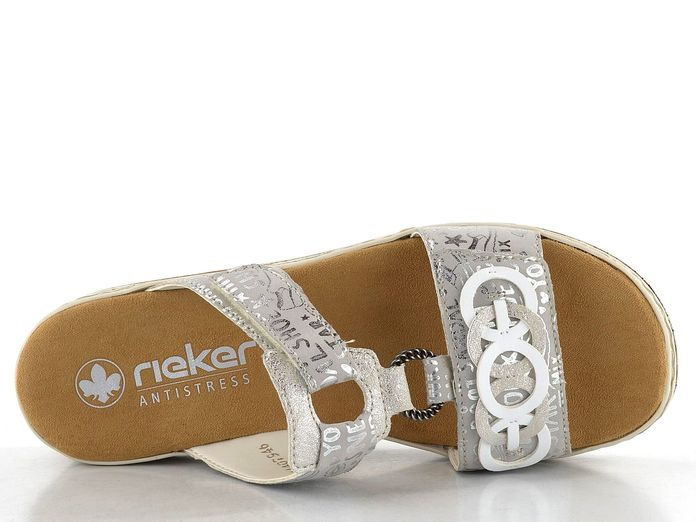 Dámské pantofle od značky Rieker jsou ideální volbou pro ty, kdo hledají komfort a styl v jednom. Tyto pantofle vynikají svým komfortním střihem a vyšší platformou s klínkem, což zajišťuje pohodlí při každém kroku. Pásky z matné syntetiky s metalickým potiskem dodávají moderní vzhled, zatímco světle šedá barva se stříbrným vzorem přináší eleganci. Praktické suché zipy usnadňují přizpůsobení šířky, což je ideální pro každodenní nošení. Měkká stélka potažená broušenou textilií zaručuje pohodlný pocit po celý den. S těmito pantoflemi od značky Rieker budete mít jistotu, že vaše nohy budou v pohodlí a stylově obuté.