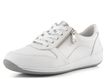 Dámské šněrovací tenisky od značky Rieker představují ideální volbu pro jarní a letní dny. Tyto tenisky v čistě bílé barvě s metalickými stříbrnými doplňky zaujmou nejen stylem, ale i pohodlím. S širším kulatým střihem "H" a vyjímatelnou koženou stélkou zajišťují komfort po celý den. Funkční zipy po obou stranách šněrování usnadňují obutí a dodávají moderní vzhled. Svršek z hladké povrstvené kůže a lehká syntetická podešev garantují kvalitu a trvanlivost. Tento model je skvělou volbou pro každou příležitost, ať už míříte do města, na procházku nebo do kanceláře.